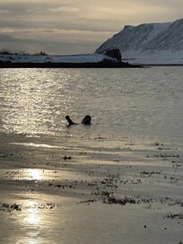 The cabin itself was cozy and had beautiful views. Driving down to the beach was stunning, and just up the road you see giant cliffs and horses and sheep. The beach that the cabin is on is full of different sea birds if you enjoy wildlife! We saw the elusive northern lights!! Far enough away from any light polution/the city but close enough that you can drive 40 min to dinner/shopping if you need a day to relax. It was wonderful to come "home" to the cabin after a long 10+ hour day of sightseeing to cook dinner and dip in the hot tub. Thank you so much for a wonderful stay!!