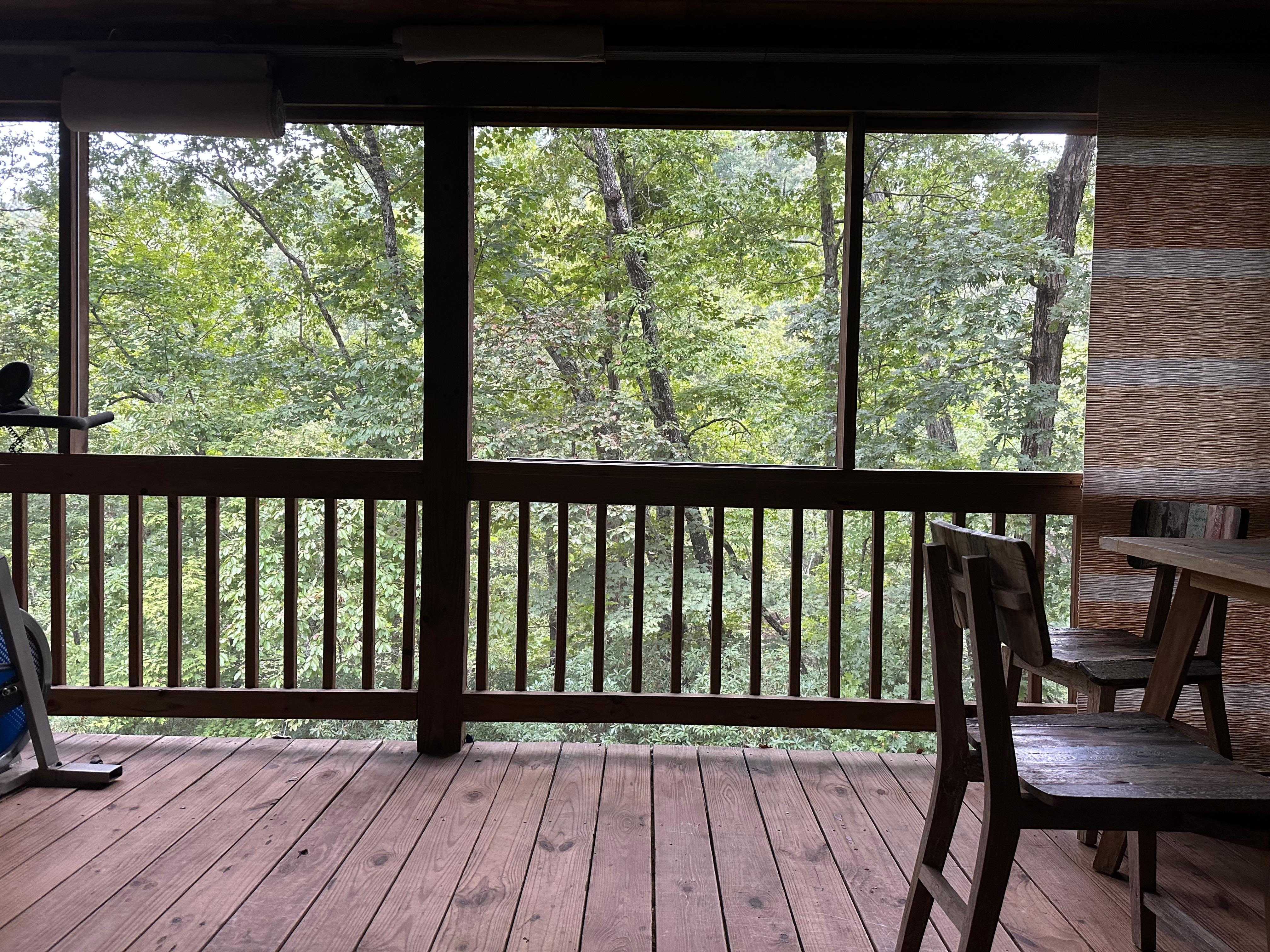 The living space is expanded via a large, beautiful, enclosed porch. There is also a spacious open deck with mountain views in winter, a cool treehouse vibe in spring, and a bird's eye view of autumn leaves in fall.