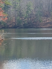 OUTDOOR LIVING: Deck w/ seating, lake and mountain views, fire pit, gas grill, lake access, canoe, life vests, fishing (fishing rods provided)