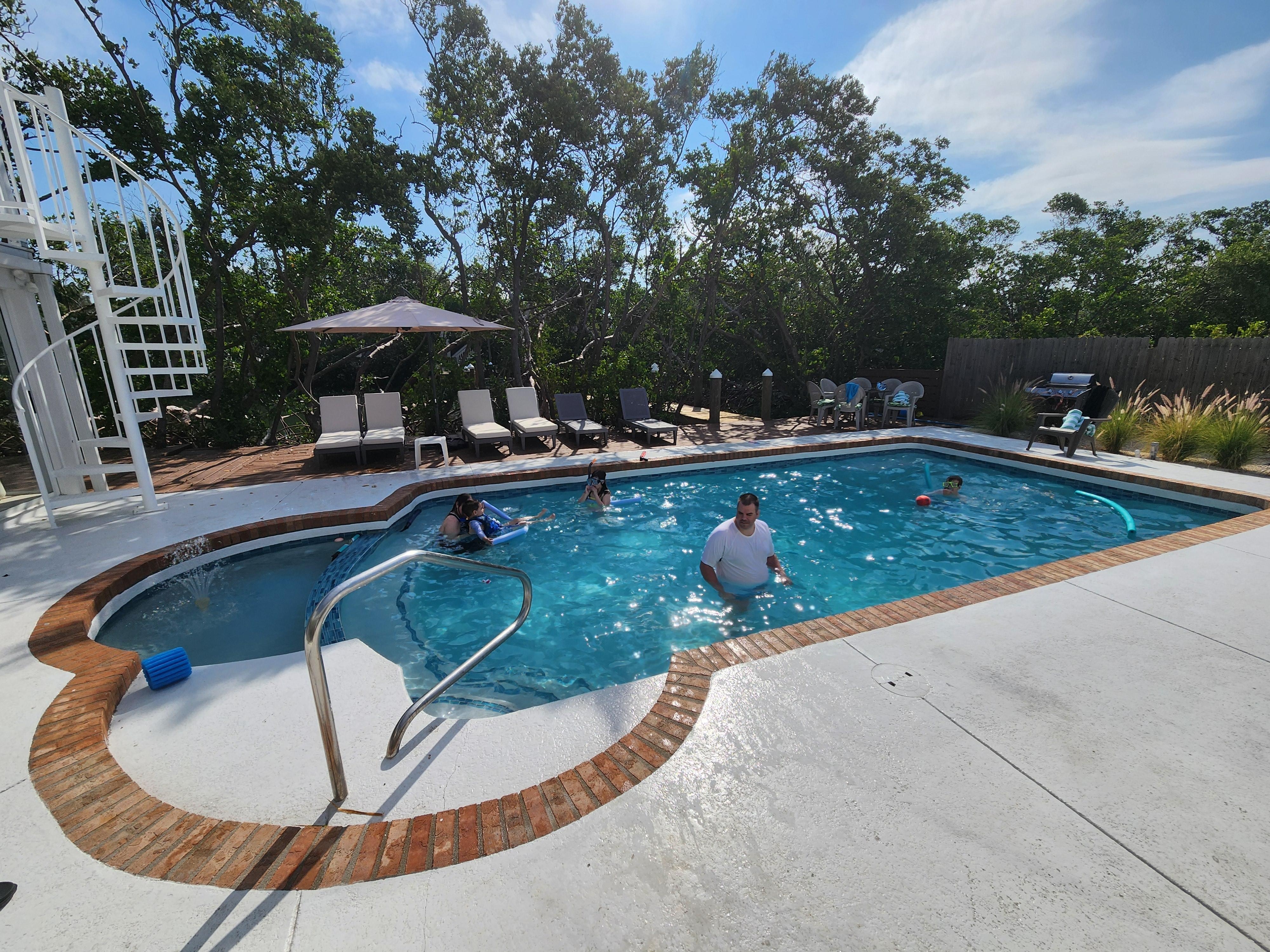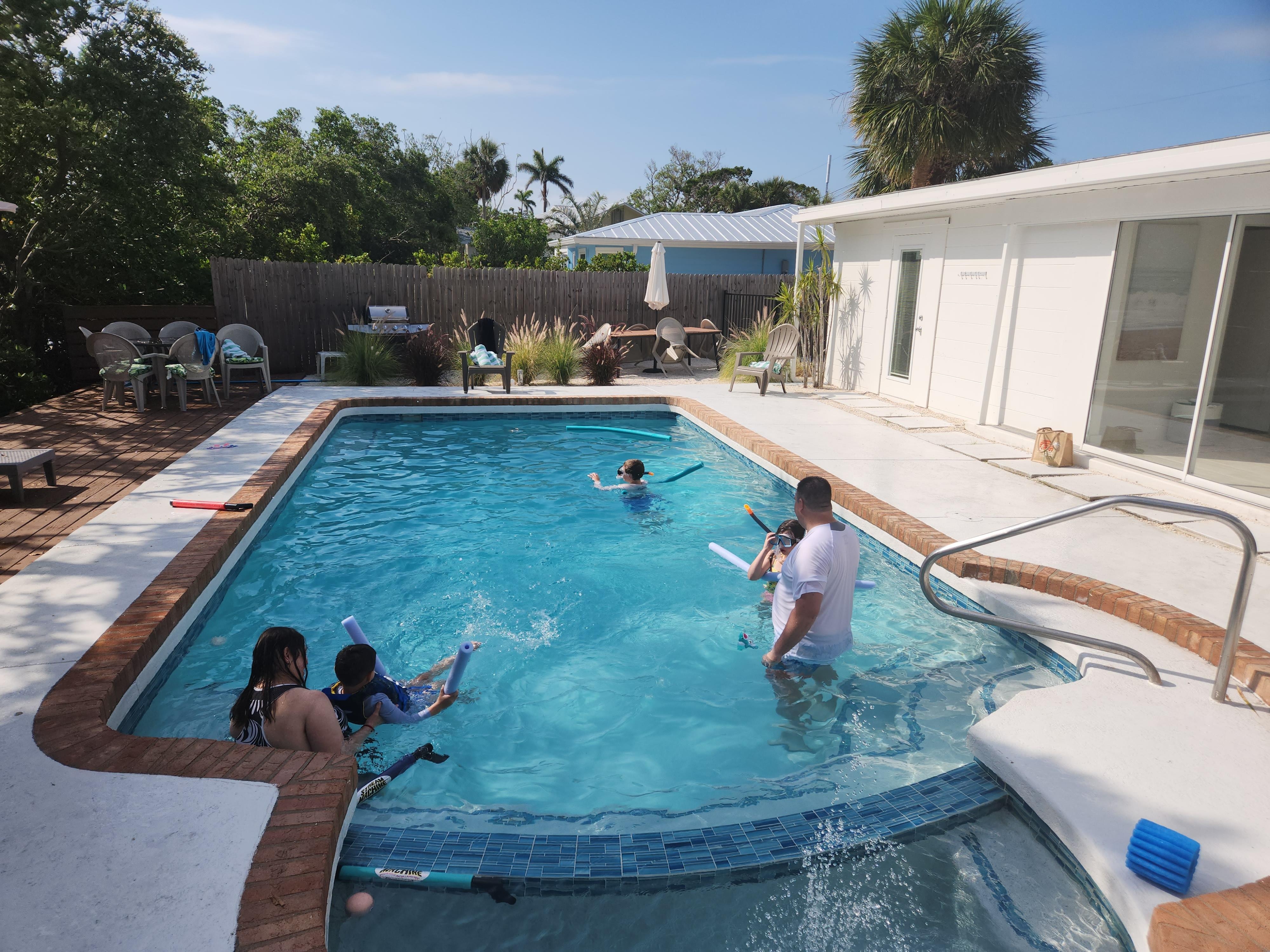 Mia Bella is one property for your exclusive use, containing 2 amazing and unique spaces - The Main House and The Villa. Both spaces face the private heated pool in the back of the property, set against the huge patio and beautiful mangroves on the canal (BYOK - bring your own kayaks). When you step out the door of either space and enter the pool area, you will enjoy the pool, sunshine, and fresh air, but leave the bugs behind - the heated pool and pool deck are screened for your utmost comfort. The patio alongside the mangroves and remaining outdoor spaces are open air.