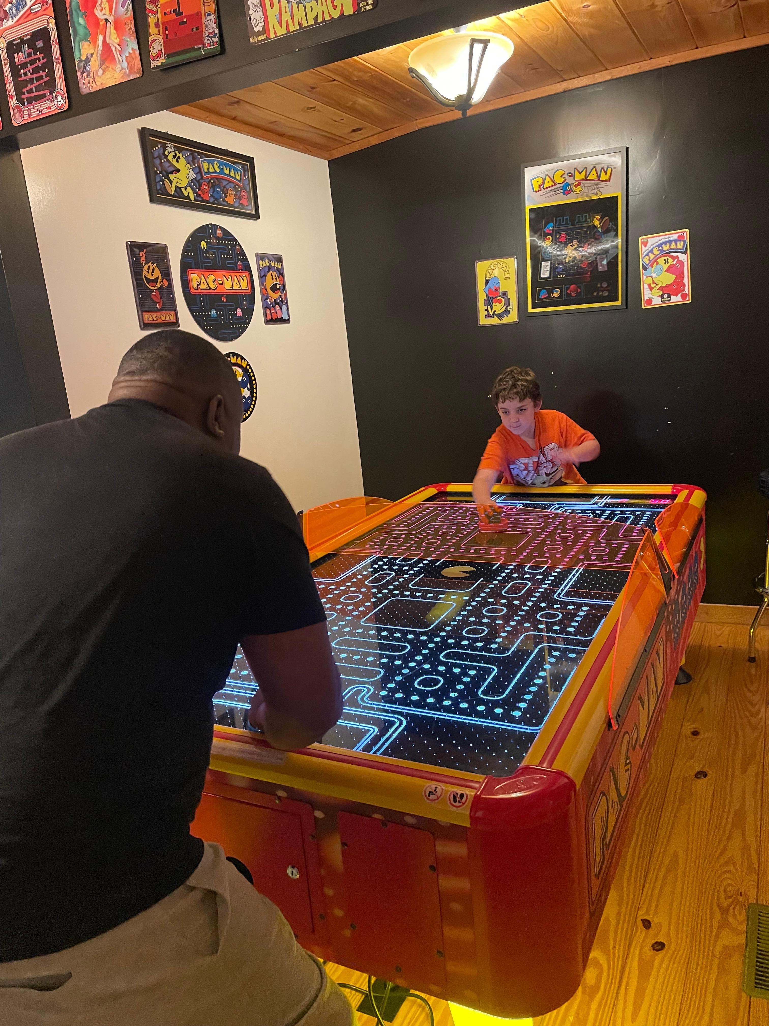 INDOOR LIVING: 3 Smart TVs w/ Dish, DVD player, custom wood furniture, vaulted ceilings, ceiling fans, foosball table, dining table, game room w/ arcade games, Skee-ball, air hockey table, books, board games