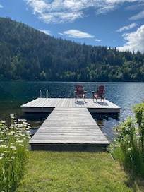 Cozy custom built cabin on private 1 acre Tyax lakefront with great dock. Swimming, paddle sports, fishing, MTB single track, hiking, South Chilcotin Park