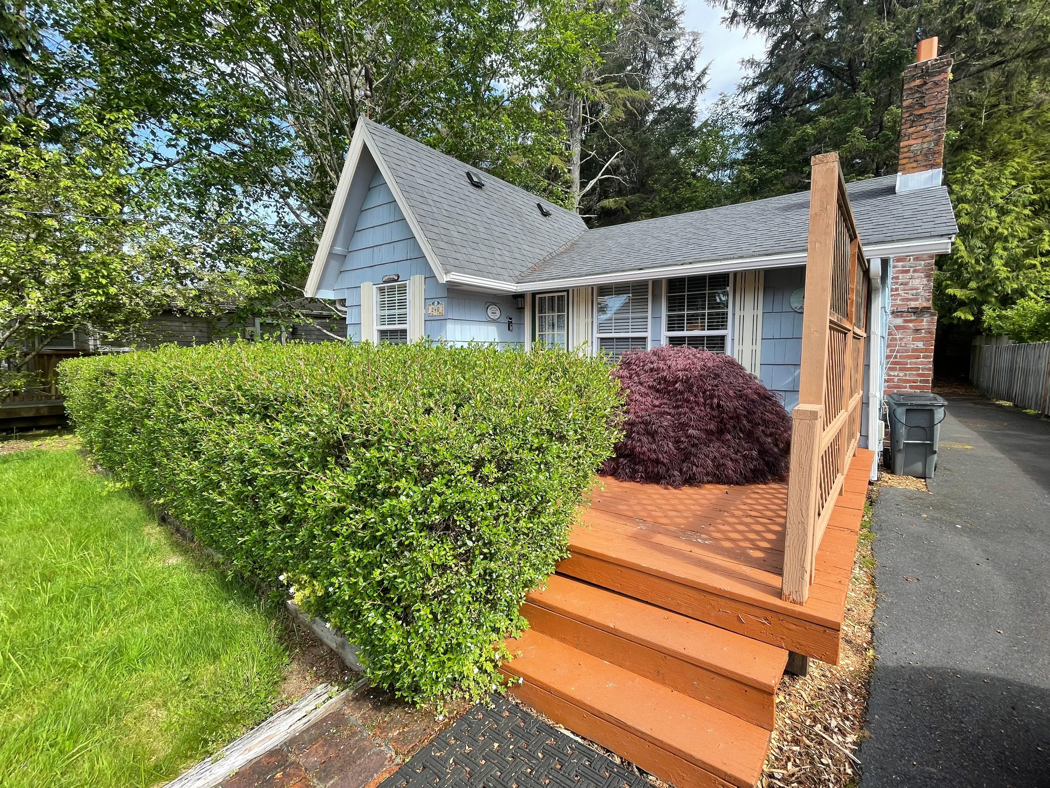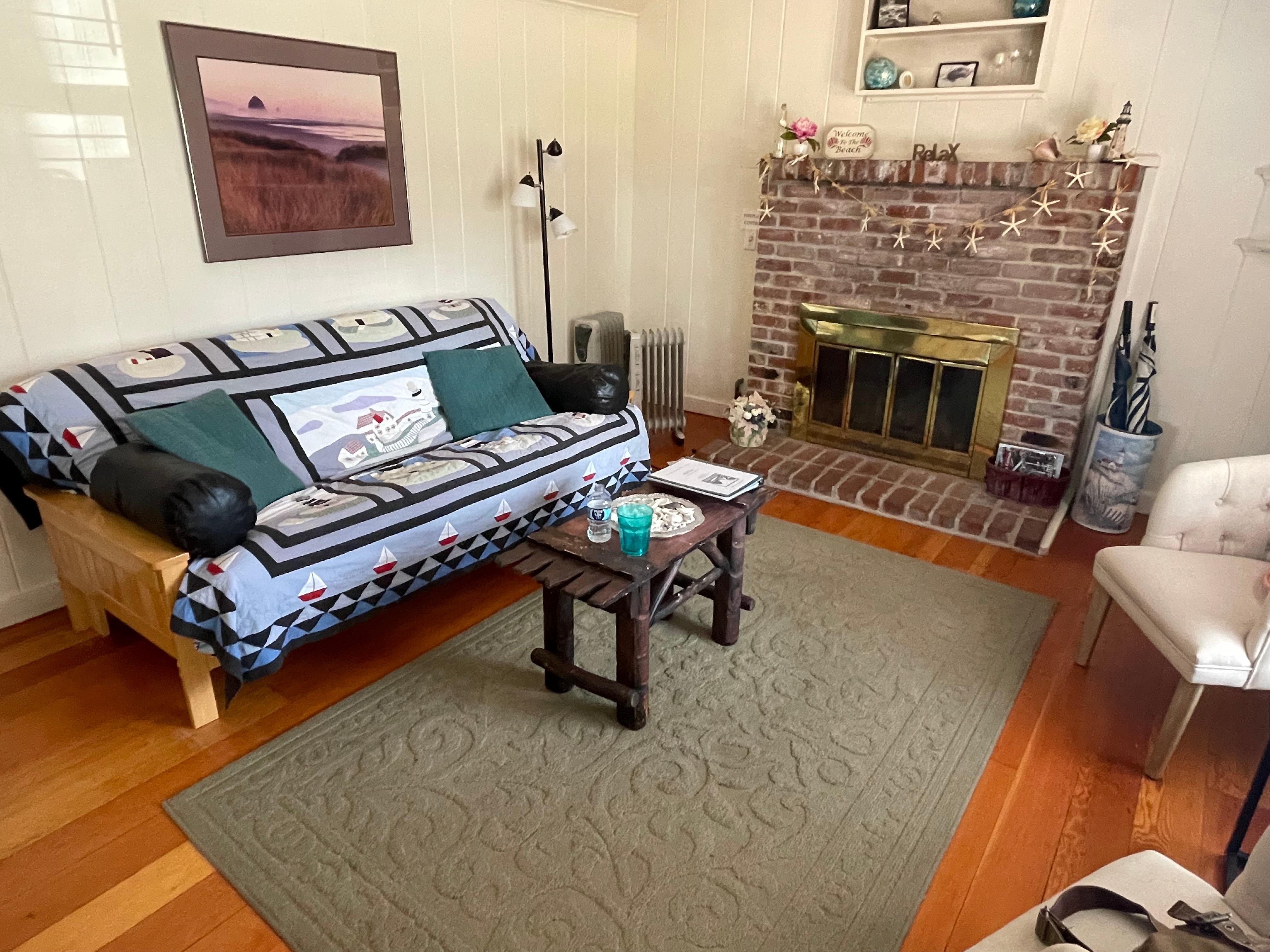 Perfect for a couple or small family, Cathy’s Cottage brings you historic charm and modern amenities for a sweet stay at the beach. Located on a quiet, tree-lined residential street and set back from the road, this single-level cutie has a snug but fully equipped kitchen, a dining nook and a living room with a gas fireplace, TV, sound system, and handy wine refrigerator. The queen bedroom has its own TV; a bunk bed room has a TV and board games for the kids as well. You can hang out on the front porch and grill dinner on the small barbecue. It’s an easy walk to a beach access, and downtown Cannon Beach is a mere ten-minute walk away. You’ll remember why this magnificent stretch of the coast has been attracting visitors for over a hundred years when you experience a stay in this adorable, historic 1935 cottage!