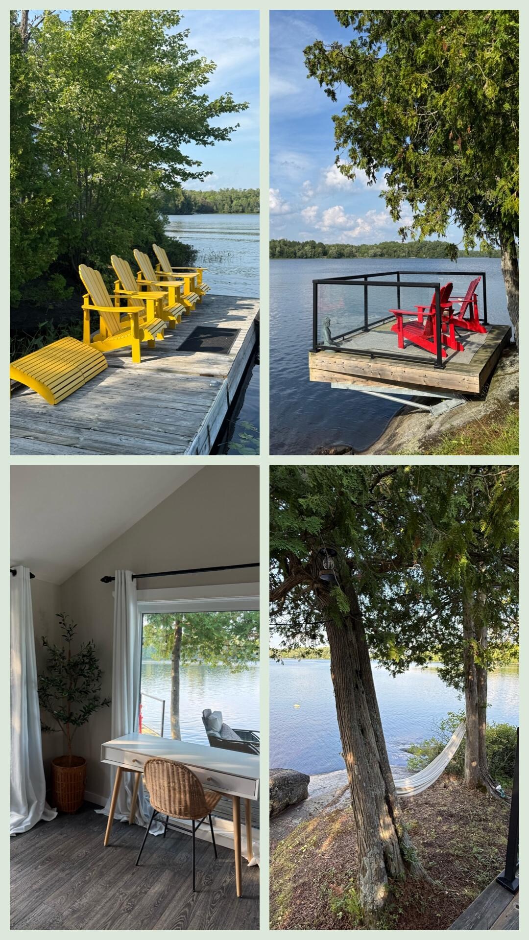The uniqueness of WestWind Cottages is its prime location, which is nestled on the tip of the peninsula on Whitestone Lake. Here you are literally surround by water, ensuring an unparalleled experience of peacefulness. A place where you can watch the sun as it rises and as it sets. We offer 2 beautiful cottages. The WestWind has 2 bedrooms, each with a queen size bed, full kitchen, living space with queen sofa bed and full bathroom with shower. The Water's Edge has 1 bedroom, with queen size bed, work space with an amazing lake view, full kitchen, living space with queen sofa bed, full bathroom with tub/shower and a mud room with laundry access. Each cottage also has its own deck for outdoor dining. This is a place where the view of the sunrise and sunset never gets old.
