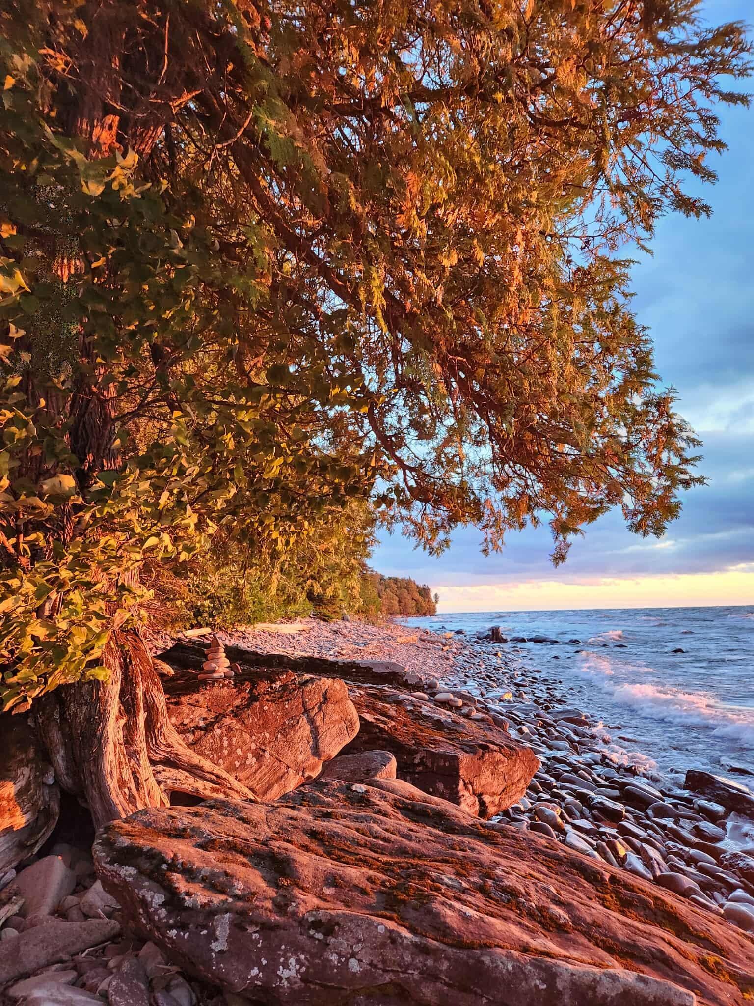 Gorgeous sunsets, rocky shoreline